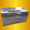 - Estructura fabricada en perfileria estructural reforzada para trabajo pesado montado sobre patas construidas en tubo sustentadas sobre regatones reguladores de altura.
