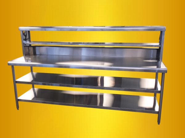 - Estructura fabricada en perfileria estructural, reforzada para trabajo pesado montado sobre patas construidas en tubo sustentadas sobre regatones reguladores de altura.